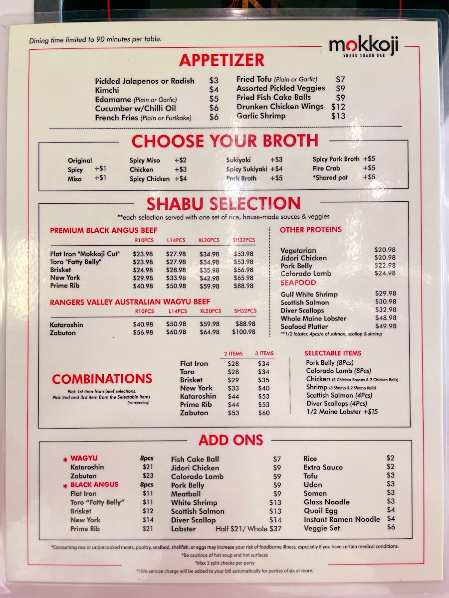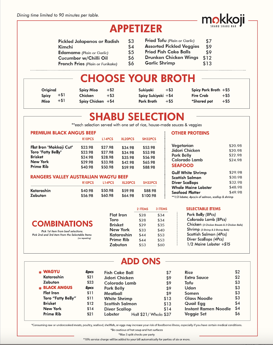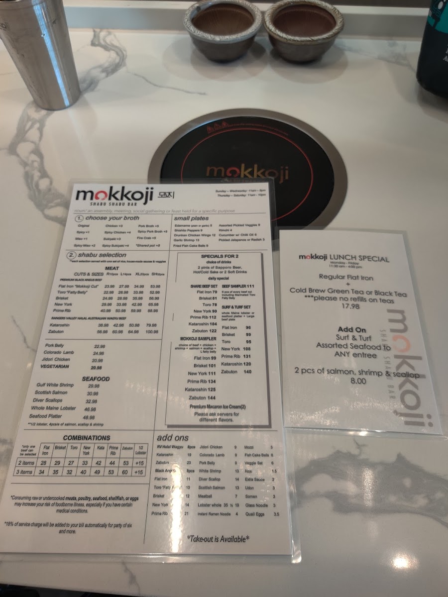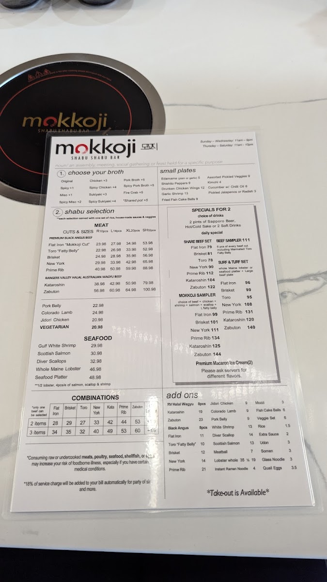 Welcome to Mokkoji Shabu Shabu - Hot Pot, a culinary gem located in San Diego's Mira Mesa neighborhood. This vibrant shabu-shabu restaurant offers an enticing menu centered around premium ingredients. Guests can indulge in a selection of thinly sliced Rangers Valley Halal Wagyu Beef or explore the 3 Item Combination Sets, featuring choices between beef, pork, or seafood, along with signature broths, rice, and vegetable sets. Each dish is thoughtfully presented, enhancing the dining experience.